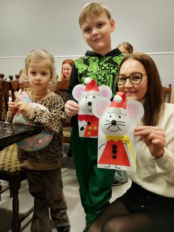 Czy wiecie, że myszki podczas zabawy wydają dźwięki wyrażające ich własne „hi-hi!”, tworzą silne więzi z innymi myszkami i bardziej od sera kochają zboża i owoce? Widzowie Familijnego Klubu Filmowego już to wiedzą, bo dzięki prelekcji i filmowi „MYSZ-MASZ NA ŚWIĘTA” mieli okazję popatrzeć na świat oczami tych małych stworzonek. Zabawa „żarłoczna myszka” pokazała, że rywalizować można w zgodzie i szacunku dla przeciwnej drużyny, czego bohaterowie filmu dopiero musieli się nauczyć. Animowane komputerowo myszki były słodkie a zarazem groźne, natomiast te nasze – zrobione przez uczestników warsztatu kreatywnego – wyrażały przede wszystkim radość z nadchodzących świąt. Na ten zbliżający się czas życzymy wszystkiego mysiego i wesołego!