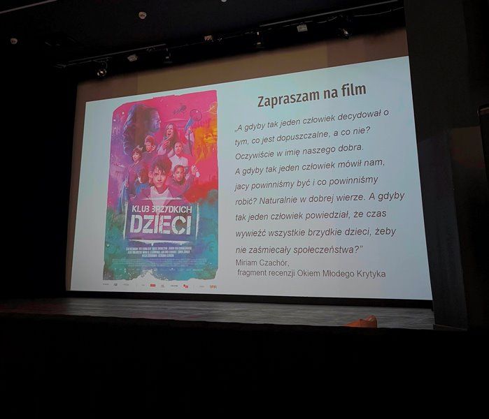 Podczas kolejnych zajęć KinoSzkoły uczniowie klas VII-VIII z Jastrzębia, Kikoła, Karnkowa oraz lipnowskiej SP5 mogli przekonać się o trwającej pogoni za złudnym pięknem, przekłamaniach, a nawet celowym publikowaniu nieprawdy w mediach społecznościowych. Przed projekcją filmu „Klub brzydkich dzieci” omówiliśmy techniki manipulacyjne i sposoby radzenia sobie w świecie clickbaitów i fake-newsów. Młodzież w skupieniu obejrzała film o chłopcu, który wraz z innymi dziećmi zbuntował się przeciwko despotycznemu prezydentowi. W trudnym dla Europy i świata czasie, osłabionym przez pandemię i agresję zbrojną, szczególnie dobitnie brzmią pytania zainspirowane holenderskim filmem. Czym jest dyktatura i autorytaryzm? Czym jest wolność i prawo do różnorodności? Czy współczesne dzieci mogą mieć moc i możliwości, żeby w przyszłości zmienić świat?