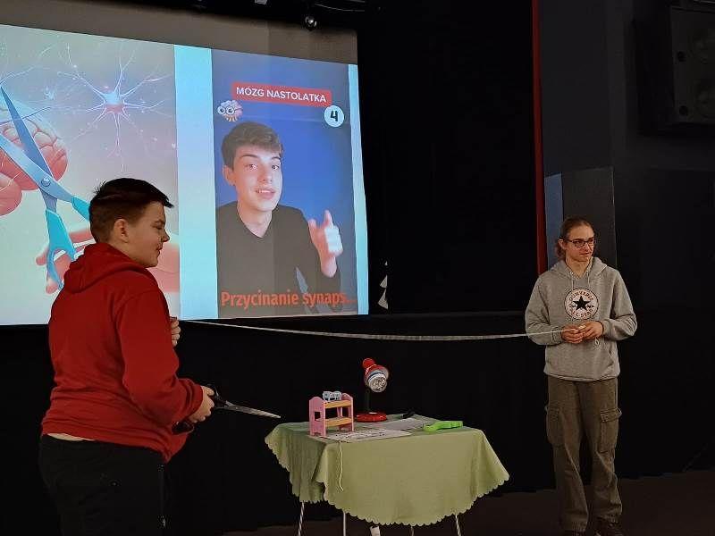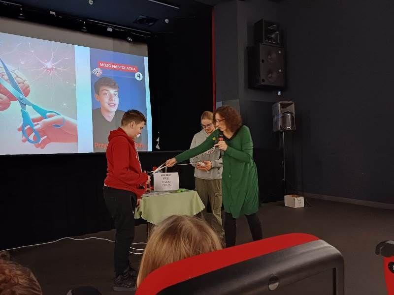 Czy mózg nastolatka jest wyjątkowy? Dlaczego przypomina plac budowy bez kierownika? Jakie funkcje pełnią kora przedczołowa, hipokamp i móżdżek? Jak zadbać o swój mózg? Na tego typu pytania odpowiedzieliśmy sobie podczas zajęć KinoSzkoły w dniu 16 stycznia. Dzięki ćwiczeniu dotyczącemu przycinania synaps nastolatkom łatwiej było sobie wyobrazić, że pielęgnowanie pewnych umiejętności jest przyszłościowe, bo nieużywane połączenia między neuronami zanikają. Uczniowie ze szkół z Radomic, Jastrzębia, Karnkowa, Kikoła i lipnowskiej SP5 wysłuchali prelekcji oraz uważnie obejrzeli film „W głowie się nie mieści 2”, który dowodzi, że można stworzyć bardzo ciekawą, zabawną, a zarazem mądrą animację dla młodzieży.