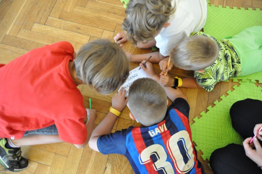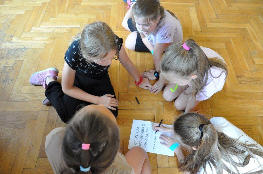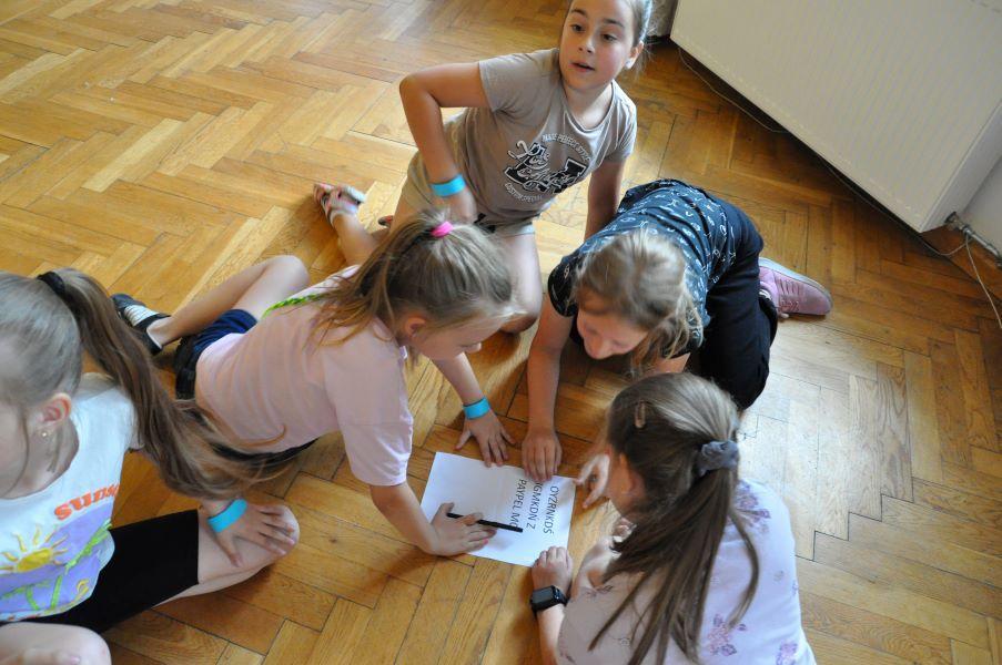13.07.2023r. – to ostatni dzień zajęć wakacyjnych z I grupą. W tym dniu rozmawialiśmy o więzi, o tym czym powinna cechować się grupa, drużyna, zespół oraz że w pojedynkę za wiele nie możemy zdziałać. Scalonej drużyny nic oraz nikt nie złamie. Niebieskie Chmurki, Mień Lipno oraz Pomarańczowy Ogień to drużyny, które podczas dzisiejszego dnia walczyły o zwycięstwo Ekstraklasy Kultury. Szereg zadań, takich jak: kalambury, „żywy chińczyk”, historia, nauka szyfrowania a później rozszyfrowywania i znajdowania rzeczy ukrytych w budynku oraz poza nim, zbijak i wiele innych ciekawych konkurencji… Kto wygrał? Każdy! Bo liczy się dobra zabawa, a dla nas liczy się każdy uśmiech i szczęśliwe oczy naszych małych bohaterów.