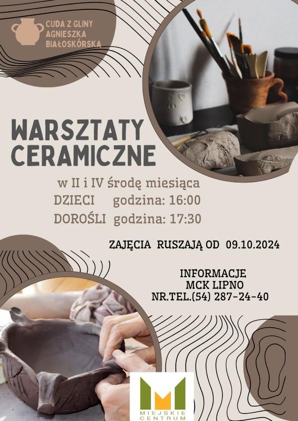 Warsztaty ceramiczne "Cuda z gliny" startują już 09.10.2024r. Zajęcia dla dzieci o godzinie 16:00 a dla dorosłych o godzinie 17:30. Serdecznie