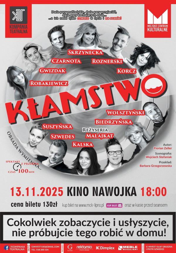 KŁAMSTWO AUTOR: FLORIAN ZELLER PRZEKŁAD: BARBARA GRZEGORZEWSKA Niesamowite i przenikliwe, a przy tym, o zgrozo, zabawne studium, właśnie…. Kłamstwa. Florian Zeller, francuski dramaturg zdążył już przyzwyczaić swoich widzów do ostrej jazdy i bolesnego telemarku, porusza się z gracją baletnicy i precyzją chirurga w meandrach i zakamarkach ludzkich umysłów. Dwie pary małżeńskie, dwie